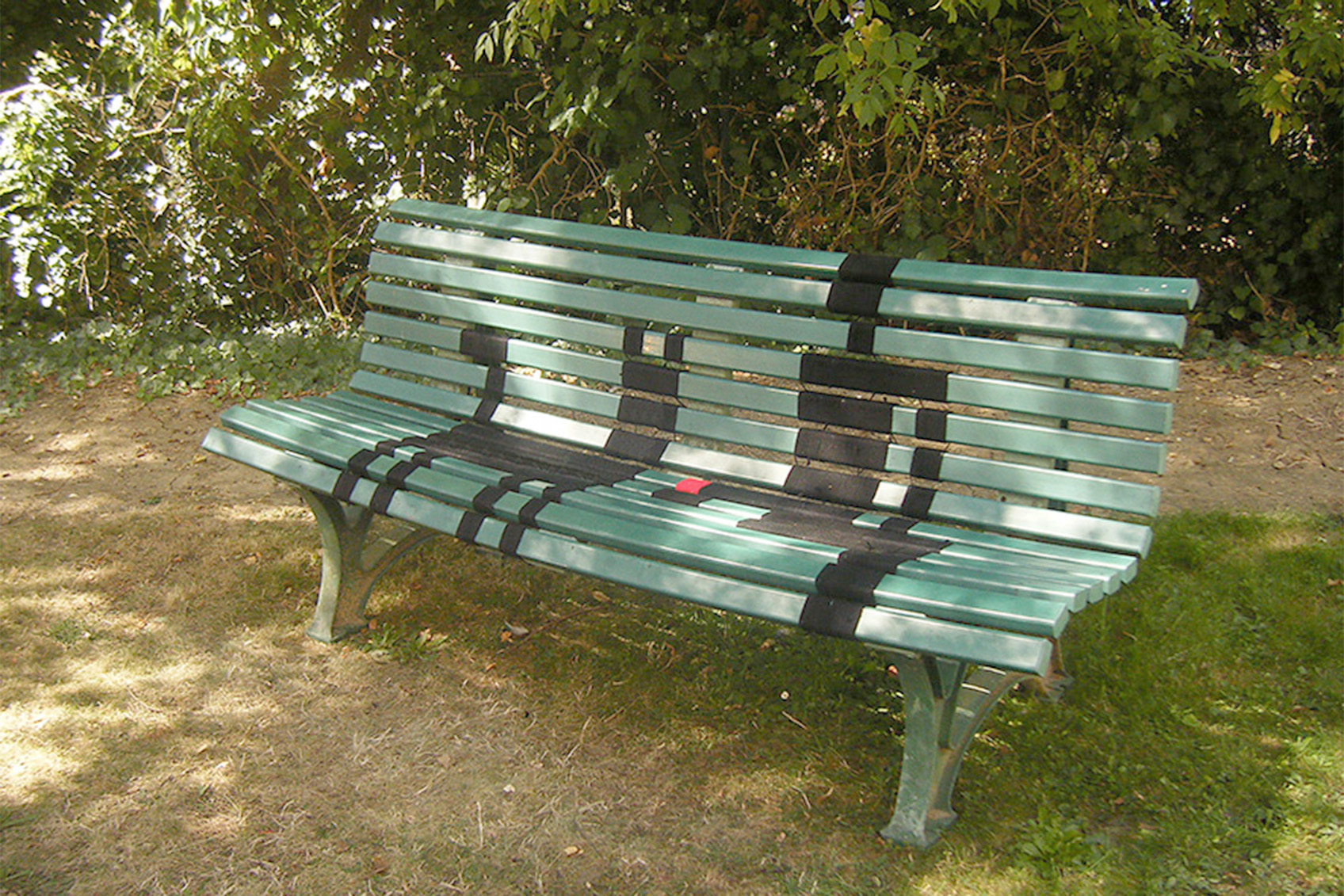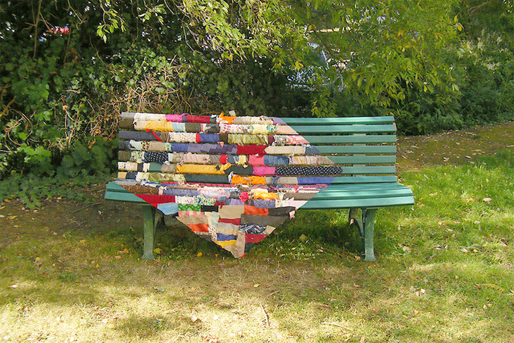 Lada Neoberdina 2012 Series of ephemeral interventions Threads, fabric on a public bench Variable dimensions Le Mans, France