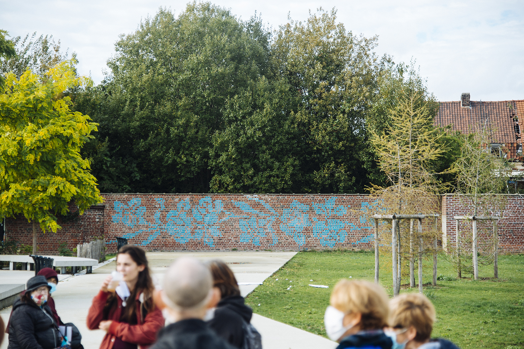 And then by taking into account the textile history of the city of Roubaix, the fresco «XX XY Blue» takes all its sense of intermediary between the past and the present, between the History and the stories, between the intimate and the collective...